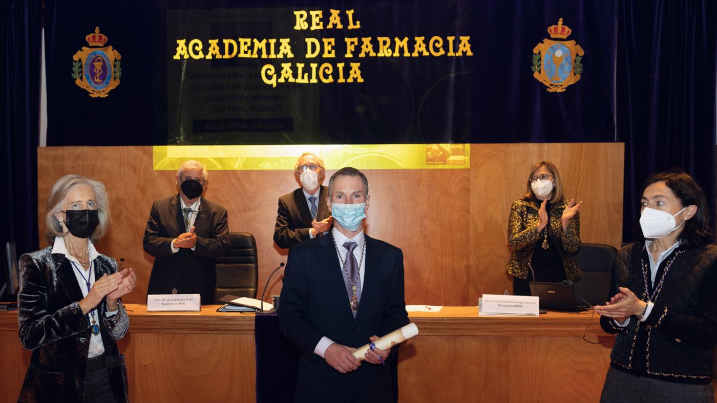 Jesús Simal, doutor en Farmacia pola Universidade de Santiago de Compostela e catedrático da Área de Nutrición e Bromatoloxía da Universidade de Vigo, ingresou este mércores como académico de número da Real Academia de Farmacia de Galicia. No seu discurso, abordou a sostibilidade do sistema de produción e consumo alimentario, identificando algunhas das súas problemáticas máis relevantes e propondo potenciais solucións a elas.