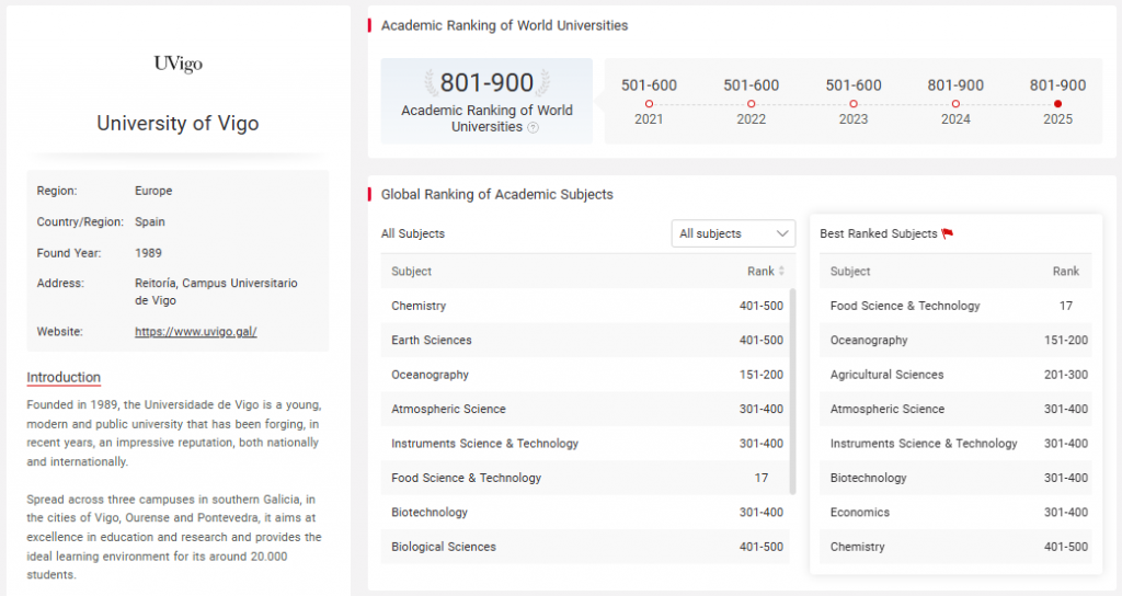 University of Vigo, in the top 3 in Europe for Food Science and Technology according to the Shanghai Ranking
